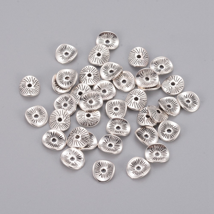Бусины-Разделители Бижутерный Сплав, Твист, Цвет: Античное Серебро, Размер: 9х1мм, Отверстие 1мм, (УТ100026605)