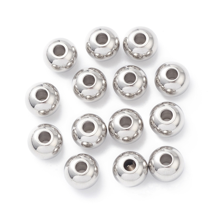 Бусины-Разделители Нержавеющая Сталь Круглые, 8x6.5мм, Отверстие 2.5мм, (УТ100026637)Упаковка: