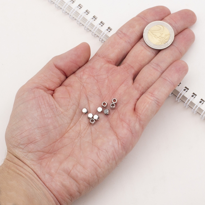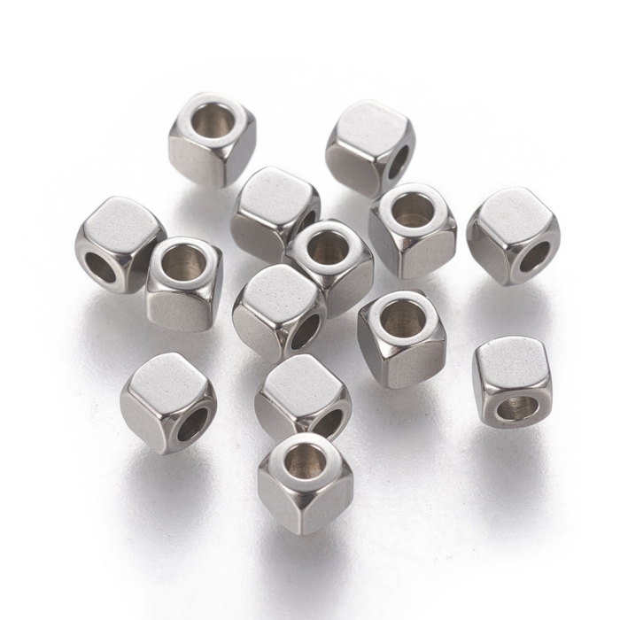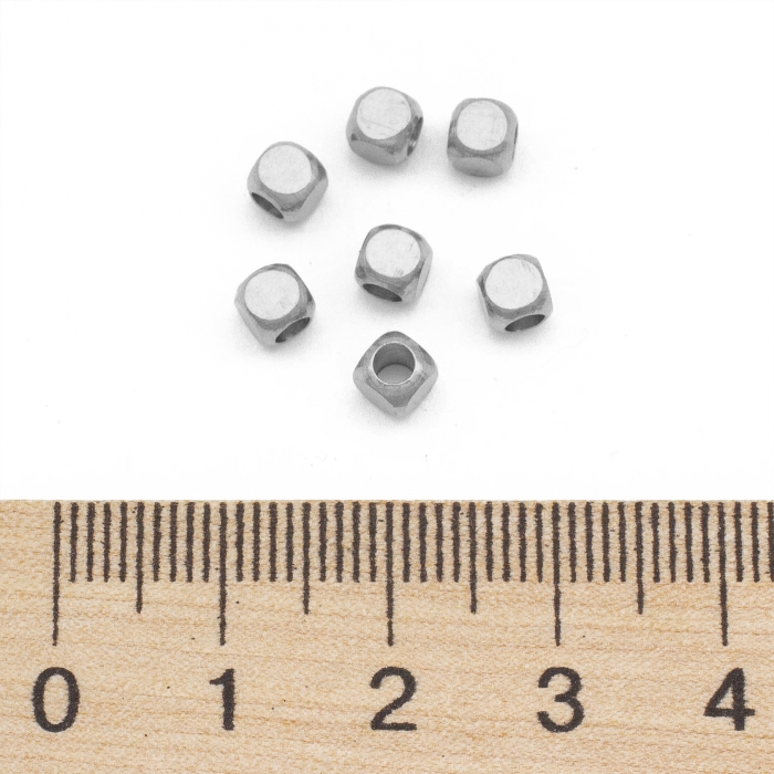 Бусины-Разделители, Нержавеющая Сталь, Куб, Размер: 4х4x4мм, Отверстие 2мм, (УТ100026646)Упаковка: