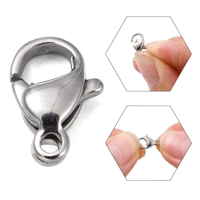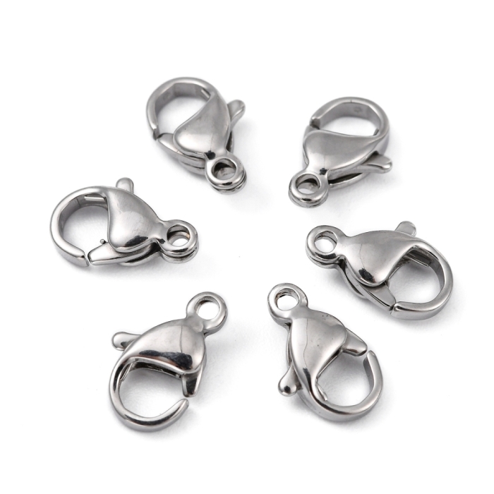 Застежка Карабин-Лобстер Полированная Медицинская Сталь, 10х6х3.5мм, Отверстие 1мм, (УТ100026730)
