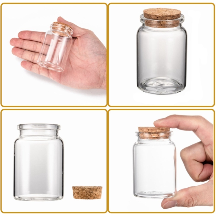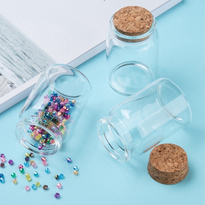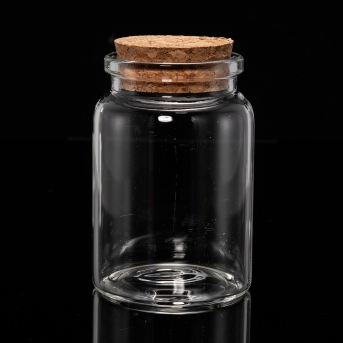 Стеклянная бутылочка для Бисера и Бусин, с Пробкой, Размер: 70x47мм, Отверстие 33мм, Пробка 35х11мм, Обьем 121мл, (УТ100026843)