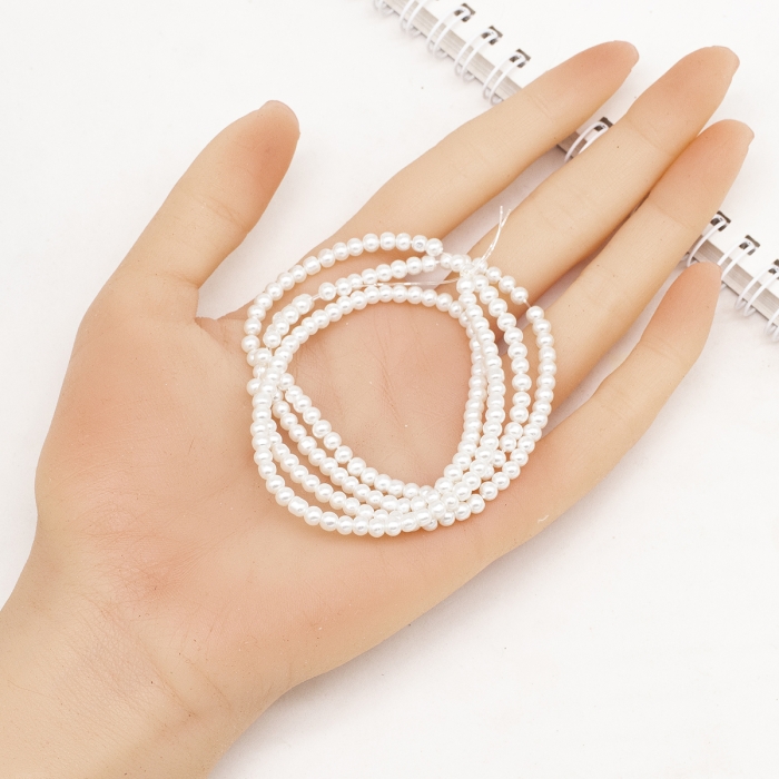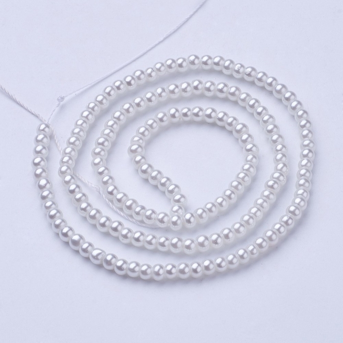 Жемчуг Бусины Стеклянные Круглые Глянцевые, Белый, 3мм, Отверстие 1мм, около 200шт/80см/нить, (УТ100026908)