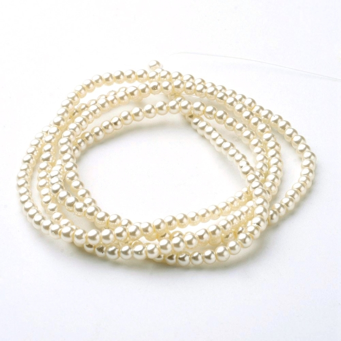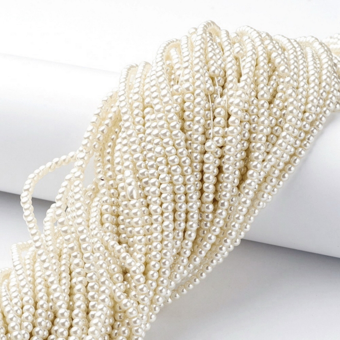 Жемчуг Бусины Стекло 3мм, Глянцевые, Круглые, Цвет: Слоновая Кость, Диаметр: 3мм, Отв-тие 0.5мм, около 185шт/55см/нить, (УТ100026916)