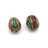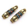 Бусины Ручной Работы из Латуни, Синтетический Коралл и Бирюза, Рис, Размер: 17~19x8~9мм, Отверстие 1.5мм, (УТ100027228)