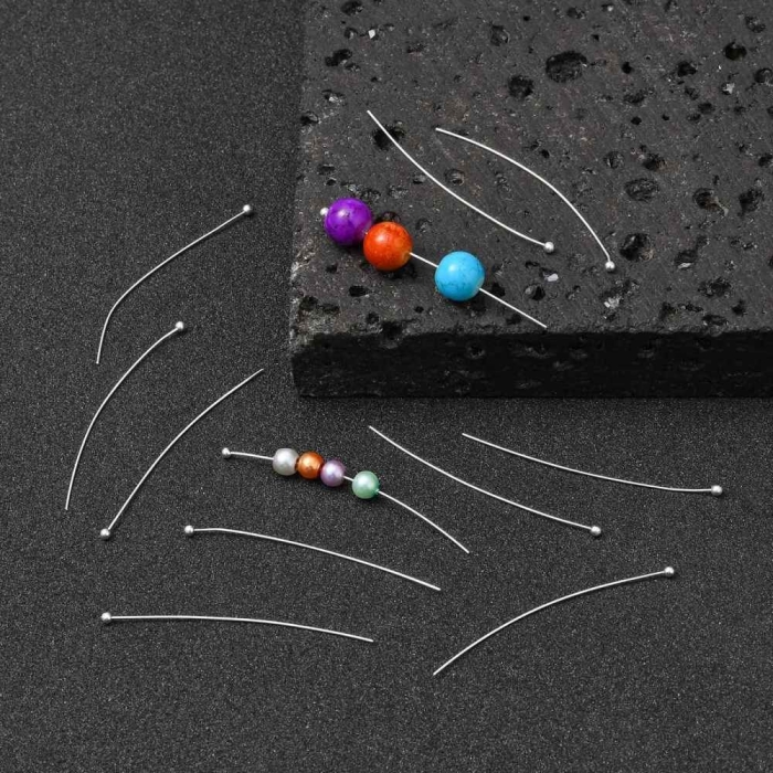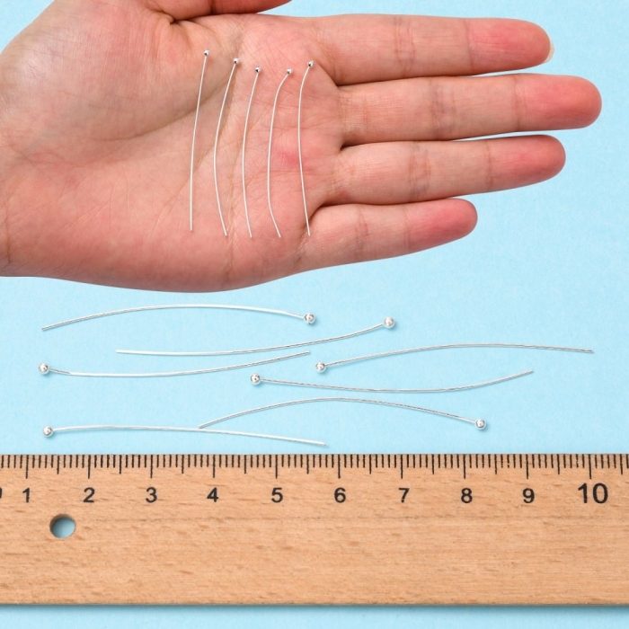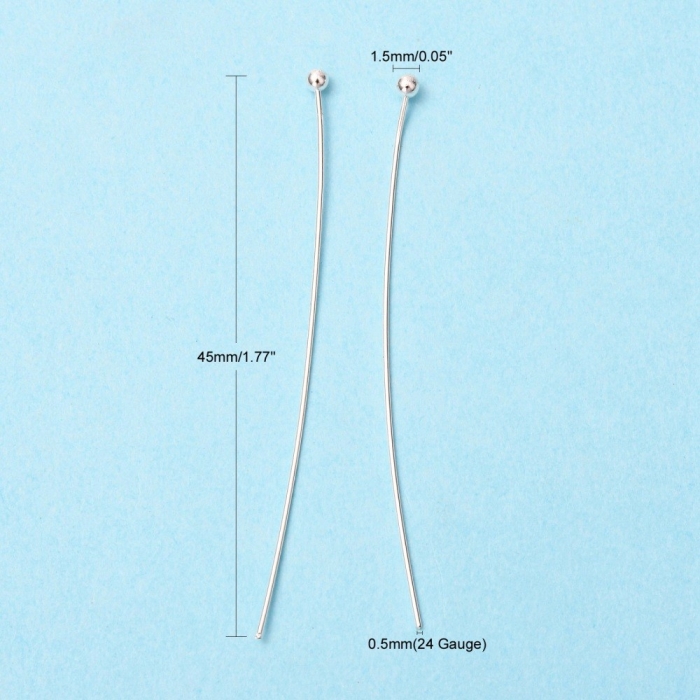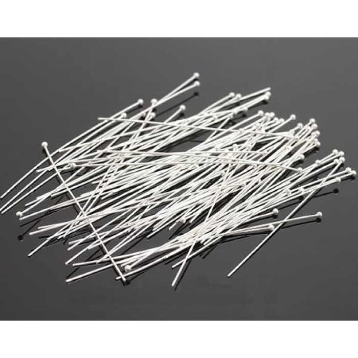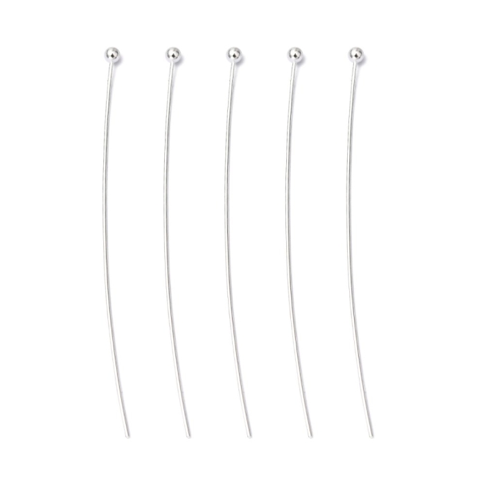 Пины с Шариком Латунь, Серебро, 45х0.5мм, Шарик 1.5мм, 50шт, (УТ100027968)