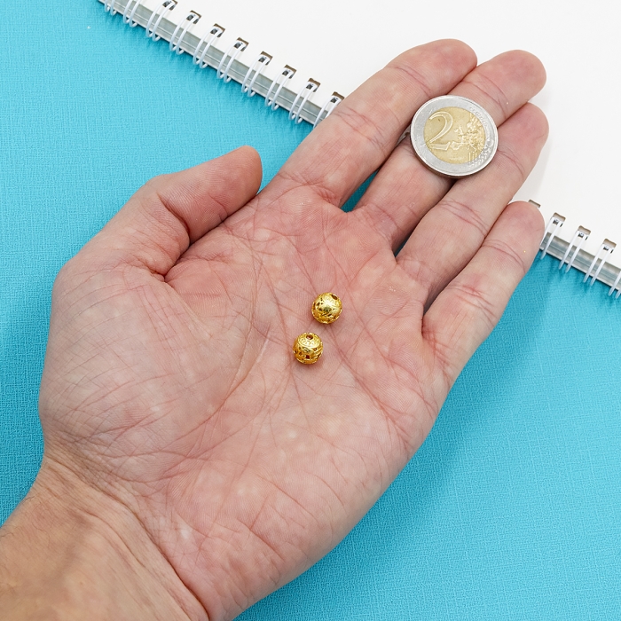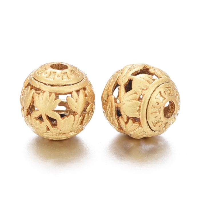 Бусины Латунь Круглые, Лотос, Полые, Матовые, Стойкое Покрытие, Золото, 8х8мм, Отверстие 1.6мм, (УТ100028253)