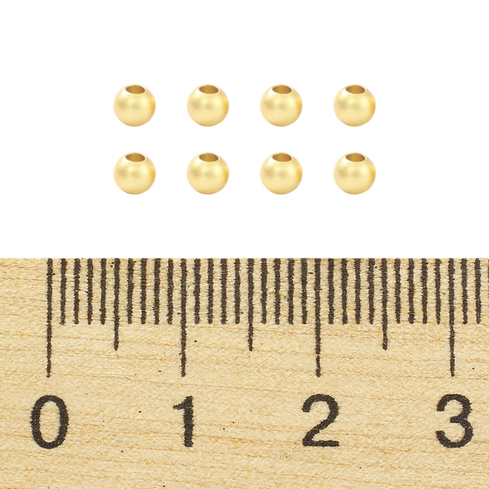 Бусины Латунь Круглые Матовые, Стойкое Покрытие, Позолота 18К, 3мм, Отверстие 0.9мм, (УТ100028263)