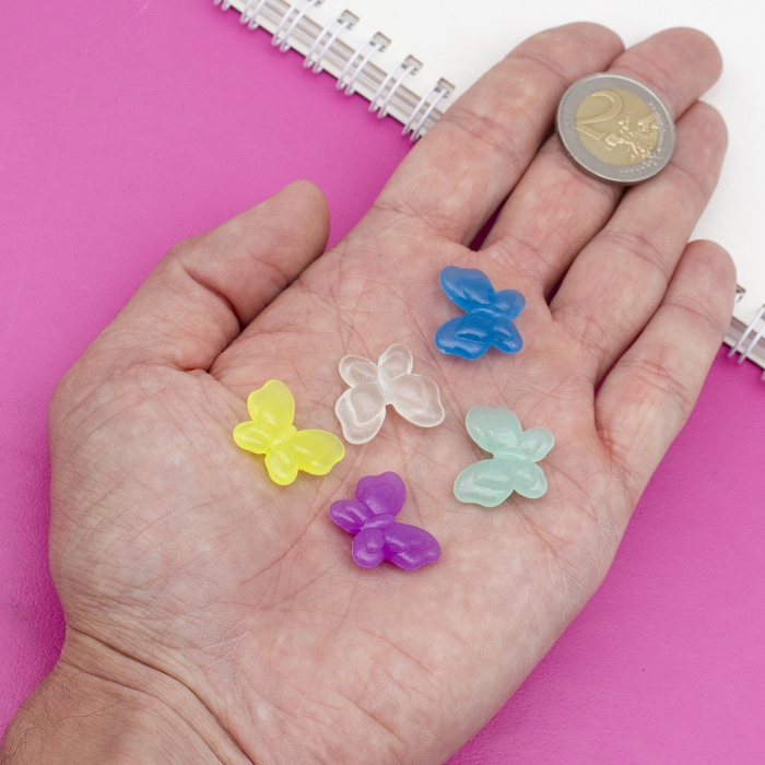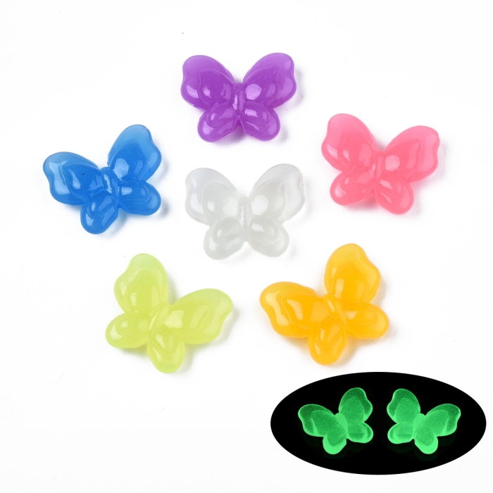 Бусины Акрил Флуоресцентные, Светящиеся, Бабочка, Цвет: Микс, Размер: 17.5х21х6мм, Отверстие 1.8мм, (УТ100028624)