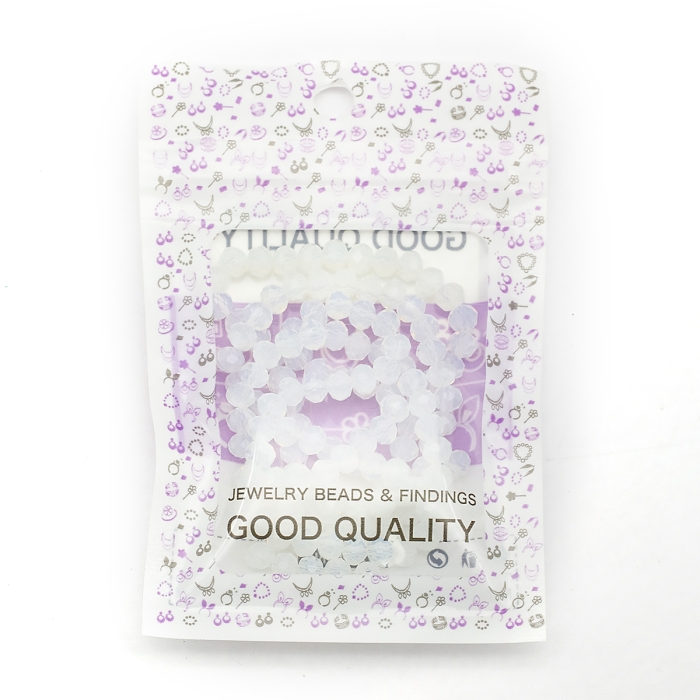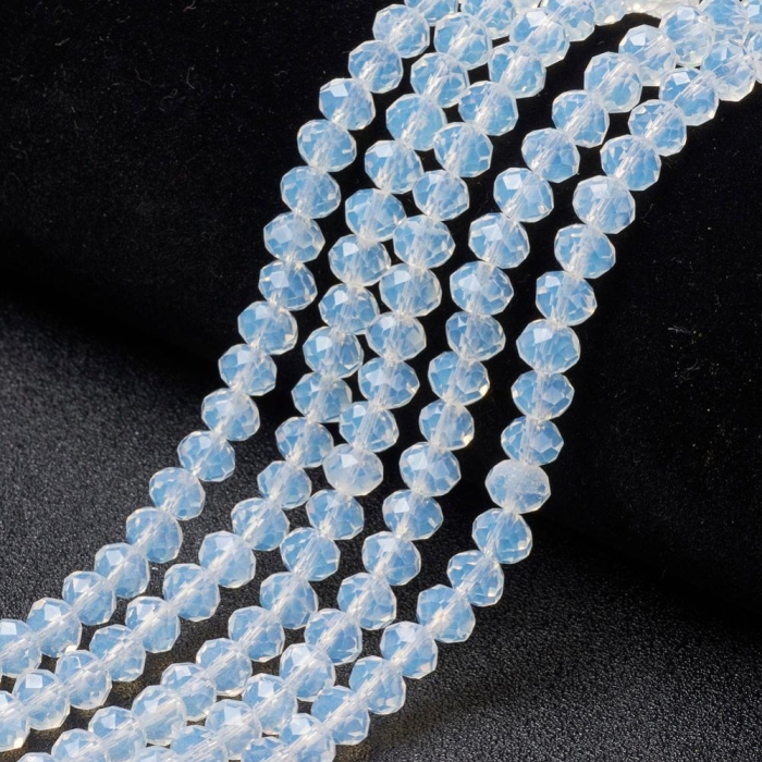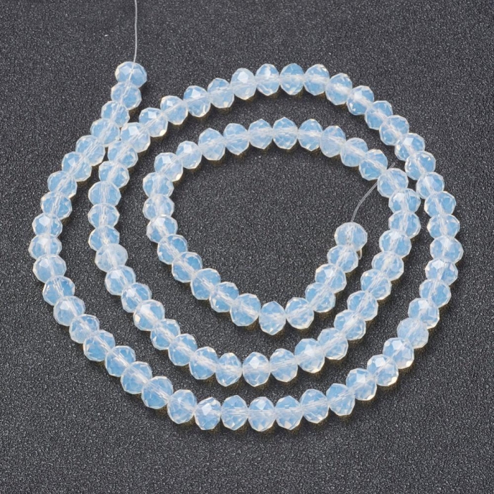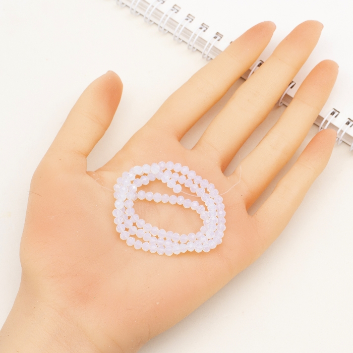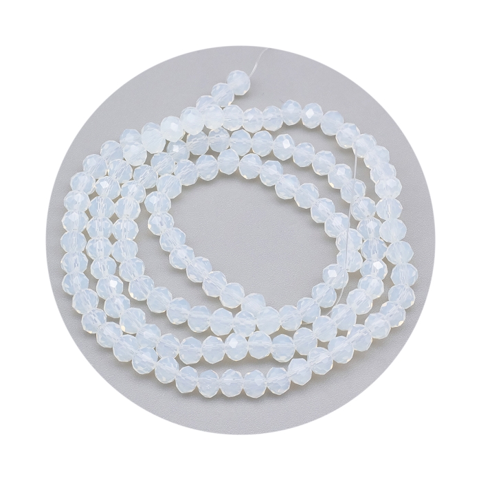 Бусины Стеклянные Имитация Нефрита, Граненые, Прозрачные, Рондель, Белый, 4х3мм, Отв-тие: 0.4мм, около 110шт/39см/нить, (УТ100028770)