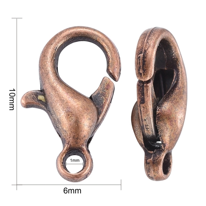 Застежка Карабин-Лобстер Цинковый Сплав, Медь, 10х6мм, Отверстие 1мм, (УТ100028793)