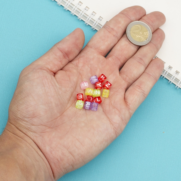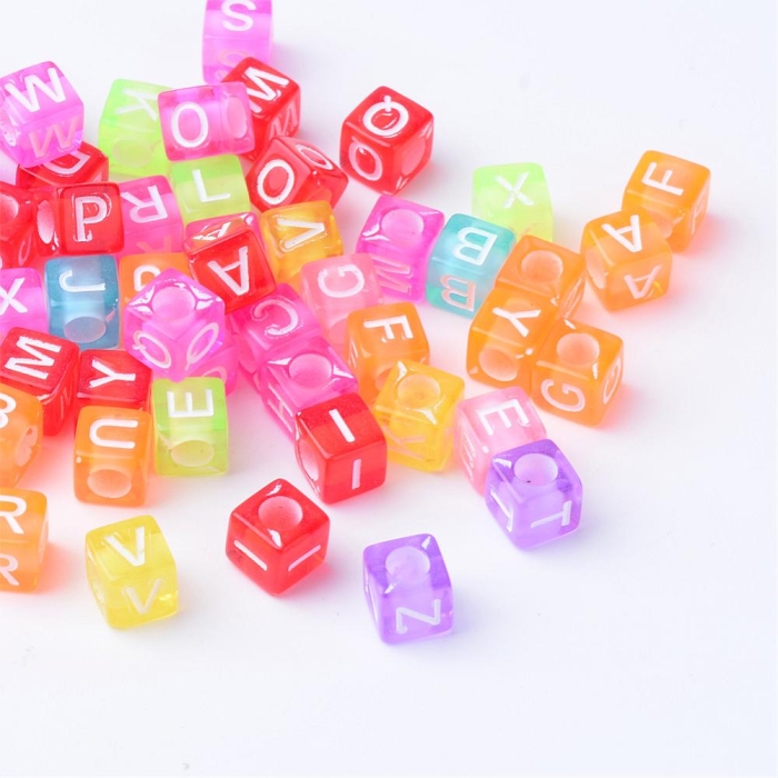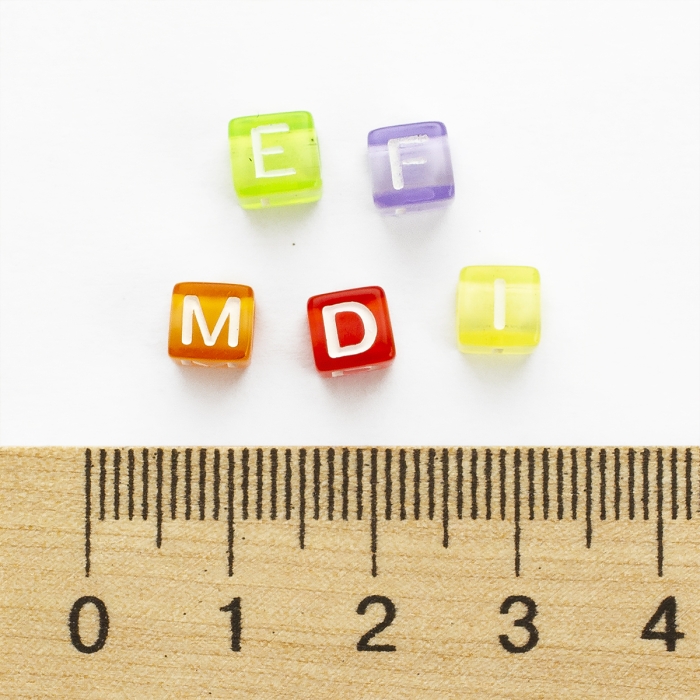 Бусины Акрил, Прозрачные, Алфавит, Кубик, Цвет: Микс, Размер: 5.5-6х5.5-6х5.5-6мм, Отверстие 3мм, около 130шт/25г, (УТ100028899)