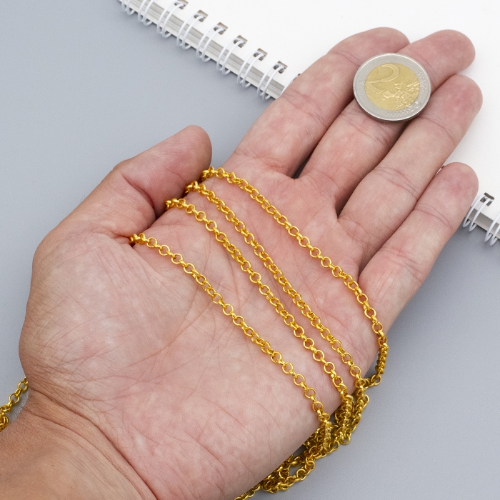 Цепь из Железа, Rolo, Круглое Звено, Непаянная, без Свинца и Никеля. Цвет: Золото.