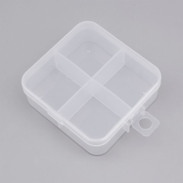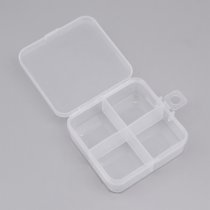 Контейнер для Бусин, Пластик, Бесцветный, Квадрат, Размер: 7.3х6.9х2.4см, 4 отсека, 3.2х3см, (УТ100029041)