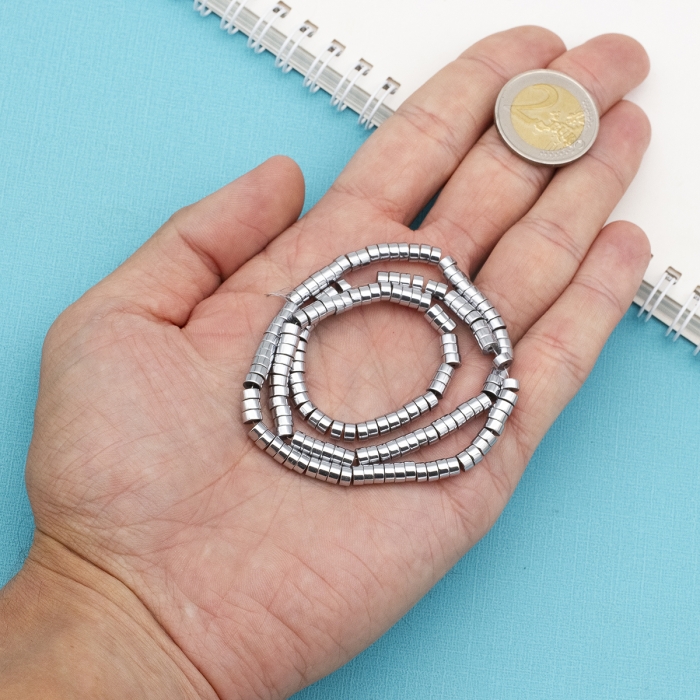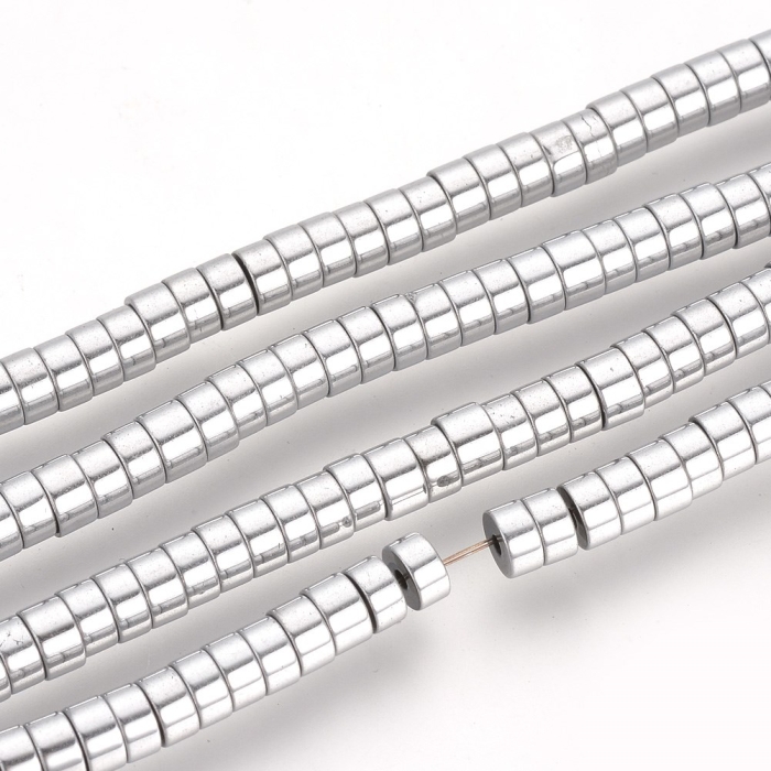 Бусины Синтетический Гематит Немагнитный Хейши, Круглые Плоские, Покрытие Платина, 4х2мм, Отверстие 1мм, около 190шт/38см/нить, (УТ100029102)