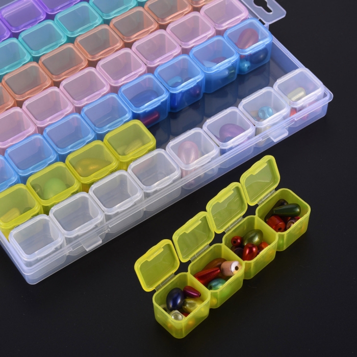 Контейнер Органайзер для Бусин и Фурнитуры Пластиковый, Цветной, 21х17.5х2.7см, 56 отсеков, 2.4х2см, (УТ100029393)