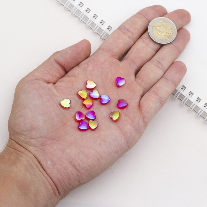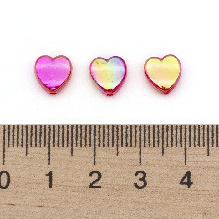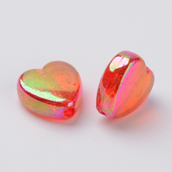 Бусины Акрил, Прозрачные, АВ цвет, Сердце, Красный, 8х8х3мм, Отверстие 1.5мм, около 130шт/25г, (УТ100029498)