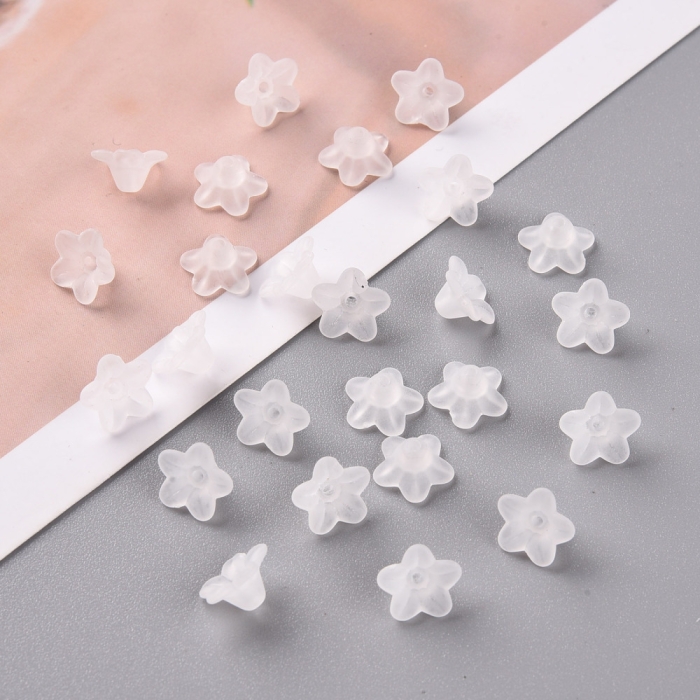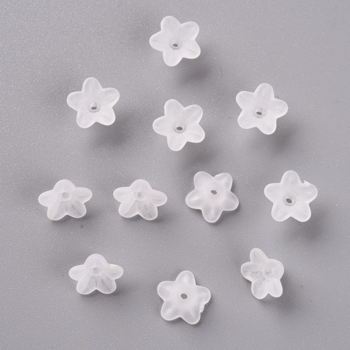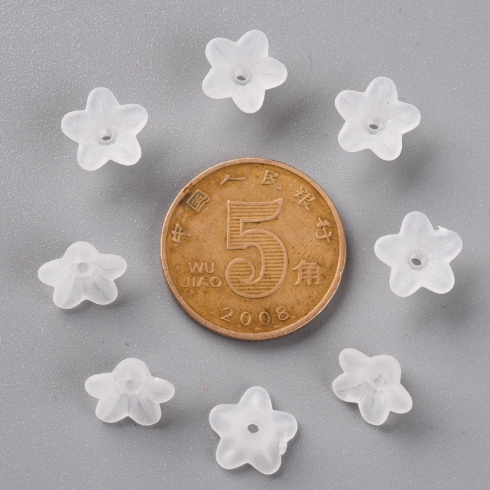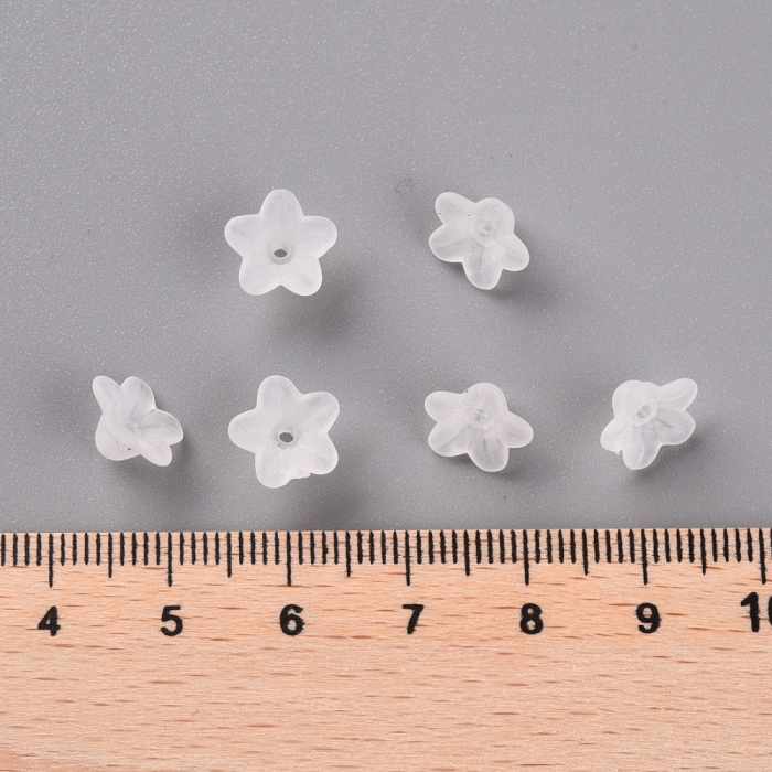 Бусины Акрил Матовые, Прозрачные, Цветок, Цвет: Белый, Размер: 10х5мм, Отверстие 1.5мм, около 200шт/25г, (УТ100029510)