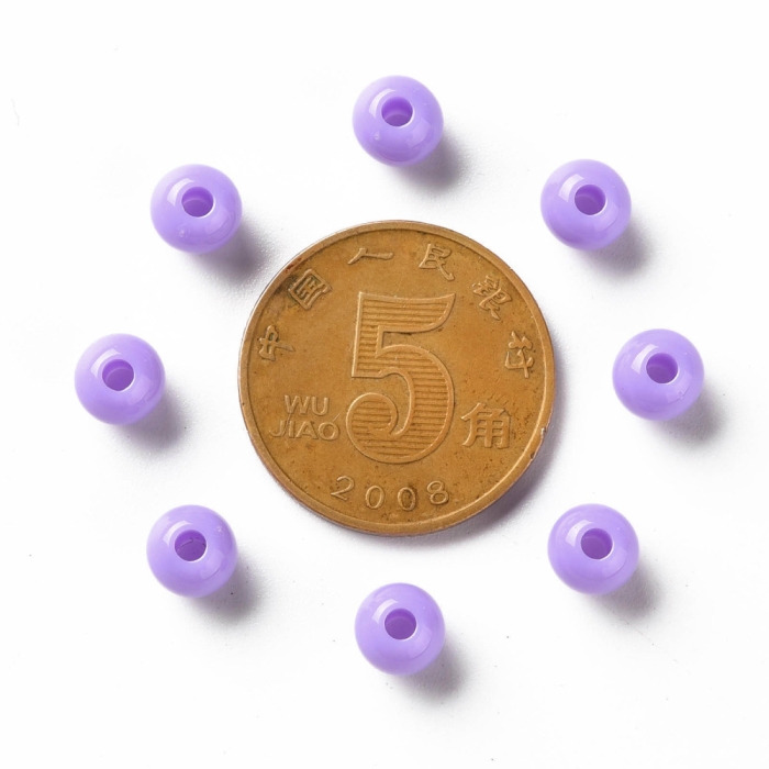 Бусины Акриловые Круглые, Цвет: Сиреневый, Размер: 6х5мм, Отверстие: 1.8мм, около 400шт/50г, (УТ100029574)