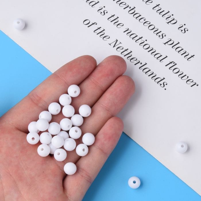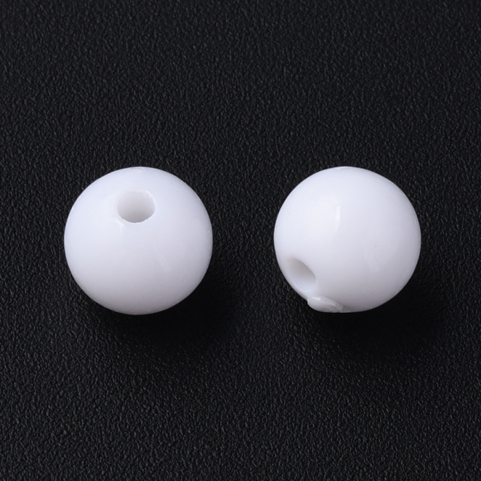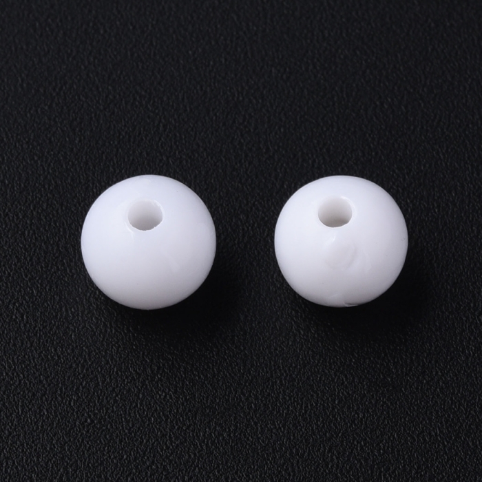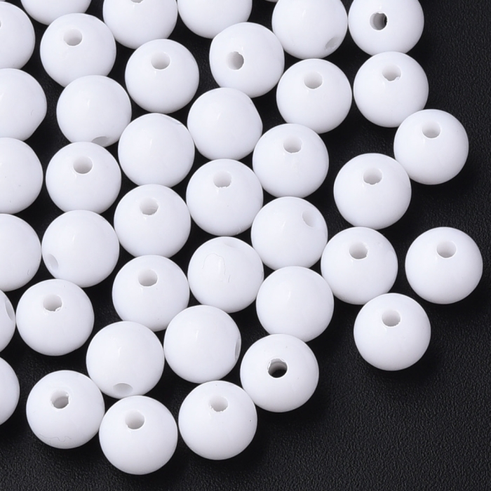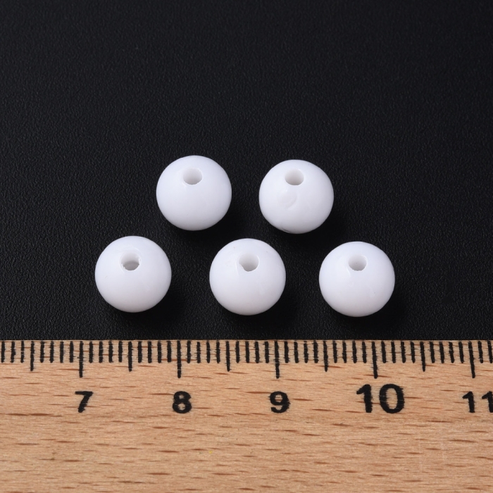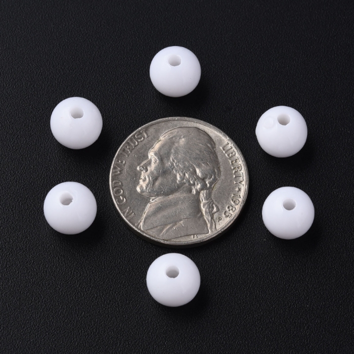Бусины Акриловые Круглые Непрозрачные, Белый, 8х7мм, Отверстие 2мм, около 160шт/50г, (УТ100029584)