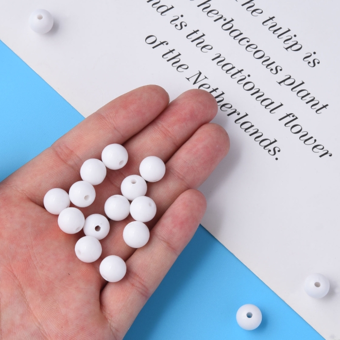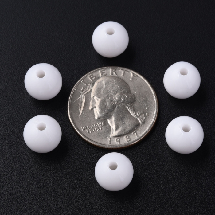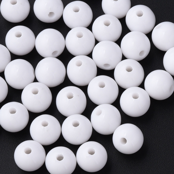 Бусины Акриловые, Непрозрачные, Круглые, Цвет: Белый.