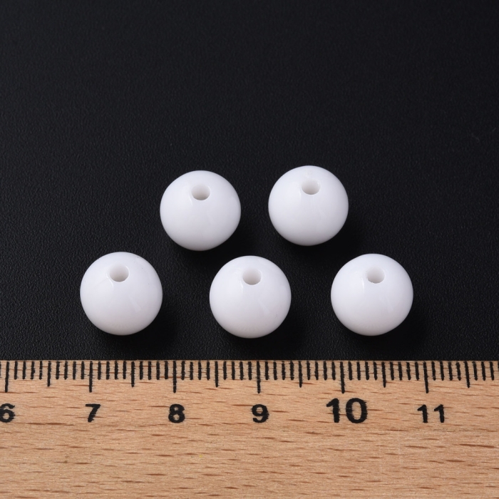 Бусины Акриловые Круглые, Цвет: Белый, Размер: 10х9мм, Отверстие: 2мм, около 90шт/50г, (УТ100029585)
