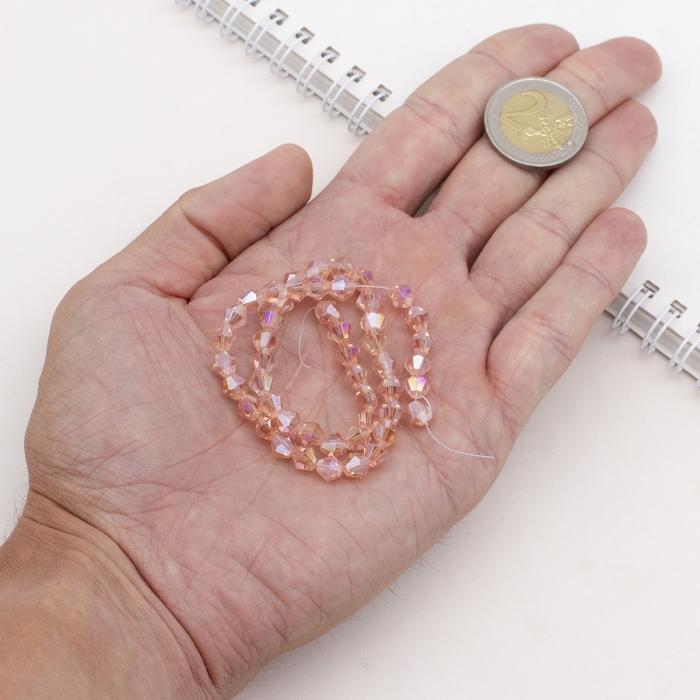 Бусины Гальваника Стекло АВ-Цвет, Граненые, Биконус, Цвет: Розовый, Размер: 6х5.5-6мм, Отв-тие: 1мм, около 45шт/26см/нить, (УТ100029688)