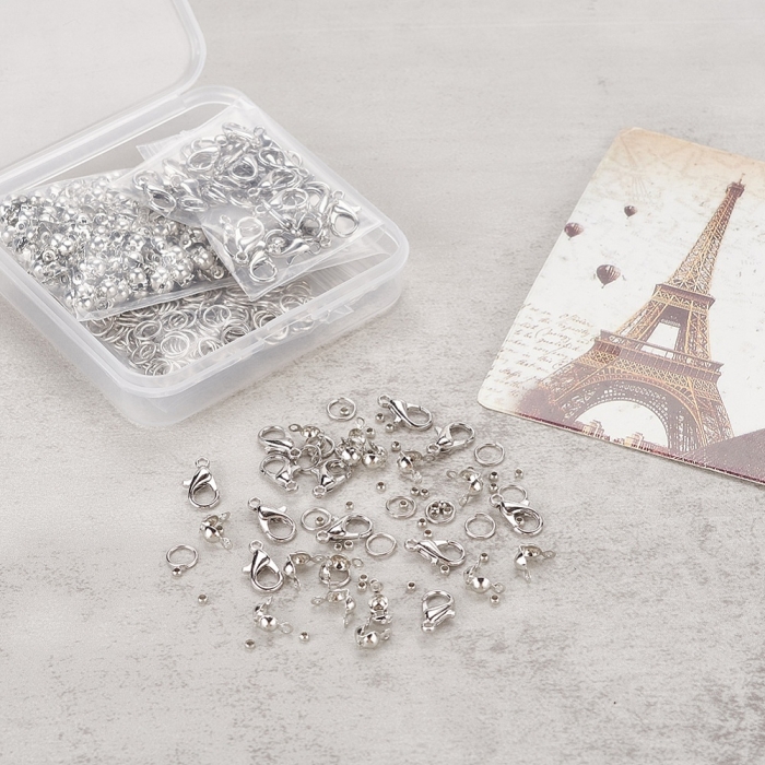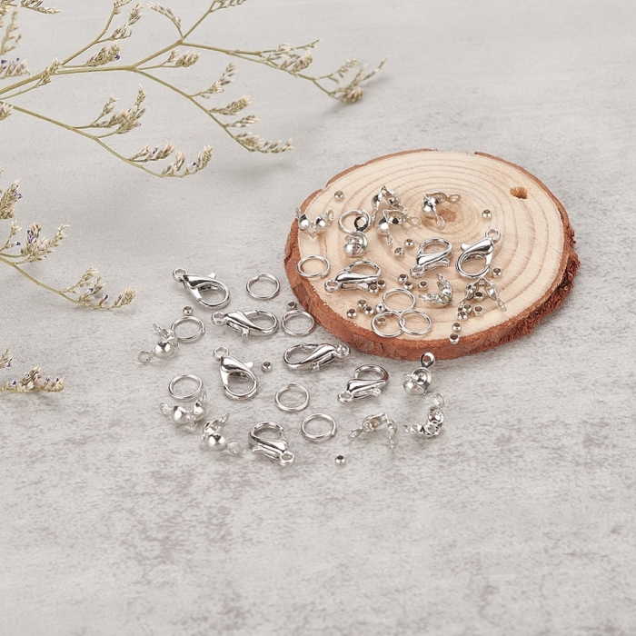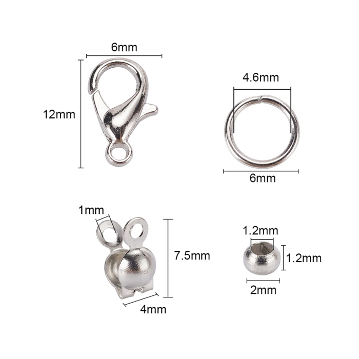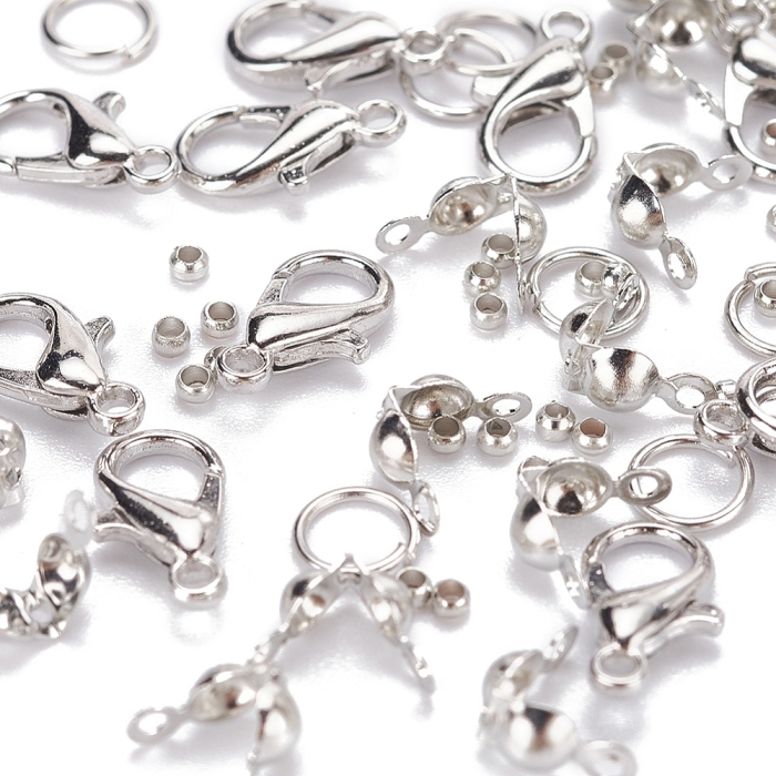 Набор для изготовления бижутерных изделий с застежкой-карабином (лобстером), соединительными кольцами и калотами представляет собой комплект фурнитуры, который используется для создания украшений. Застежка-карабин обеспечивает удобное и надежное закрывание украшения, соединительные кольца служат для соединения различных элементов, а калоты — для крепления и закрытия концов бисерных или проволочных украшений.