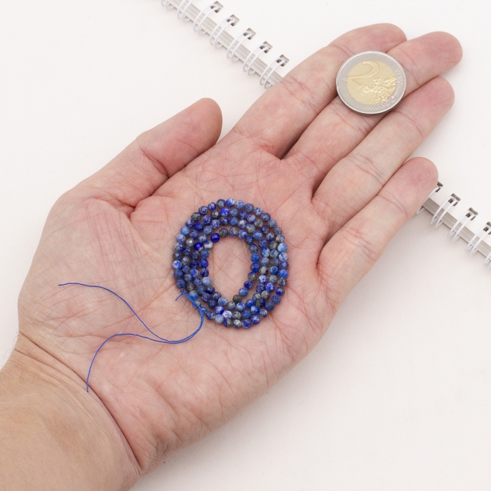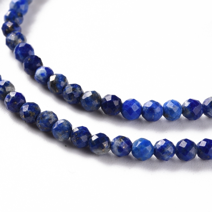 Бусины Натуральный Лазурит, на нитях, Граненые, Круглые, 3мм, Отв. 0.5мм, около 113шт/37см/нить, (УТ100030174)