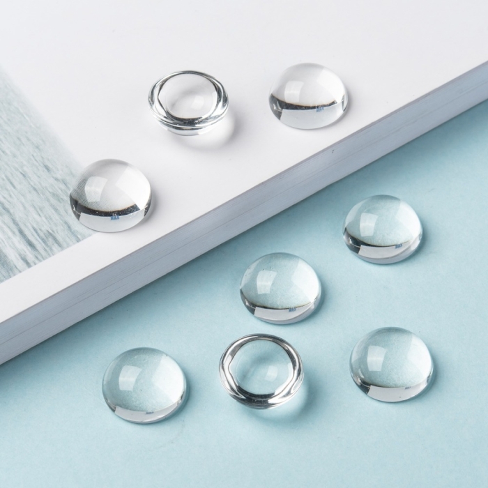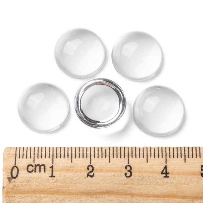 Кабошоны Стеклянные Прозрачные Круглые, Бесцветные, 14х7мм, 20шт/упак, (УТ100030329)