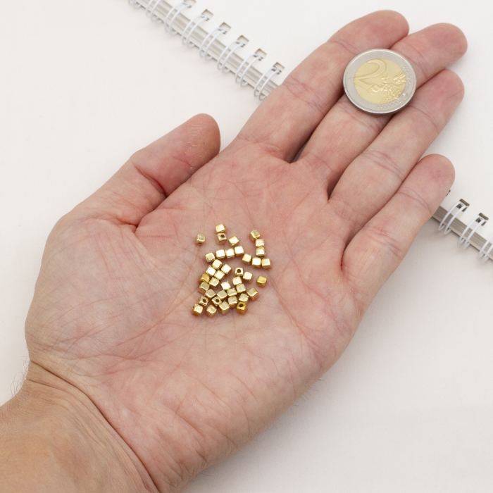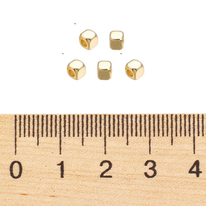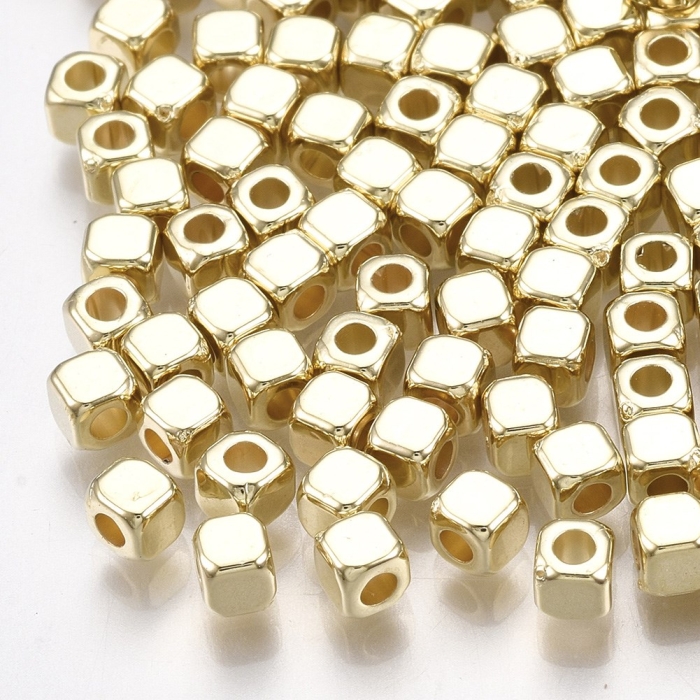Бусины-разделители Пластиковые ССВ, Кубик, Цвет: Светлое золото, Размер: 3х3х3мм, Отв-тие 1.5мм, около 330шт/50г, (УТ100030373)