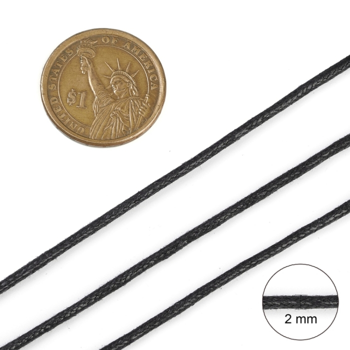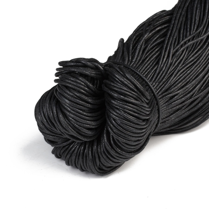Шнур Вощеный Хлопковый для плетения, Макраме и бижутерии, Черный, 2мм, около 60-65м/связка, (УТ100030490)