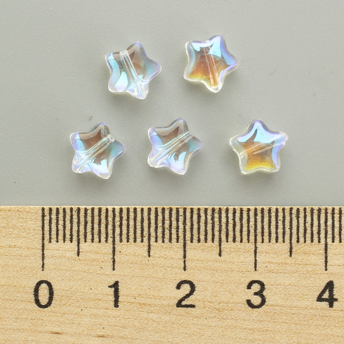 Стекляные Бусины Звезда, Прозрачные, Окрашеные напылением, Покрытие АВ цвет,
