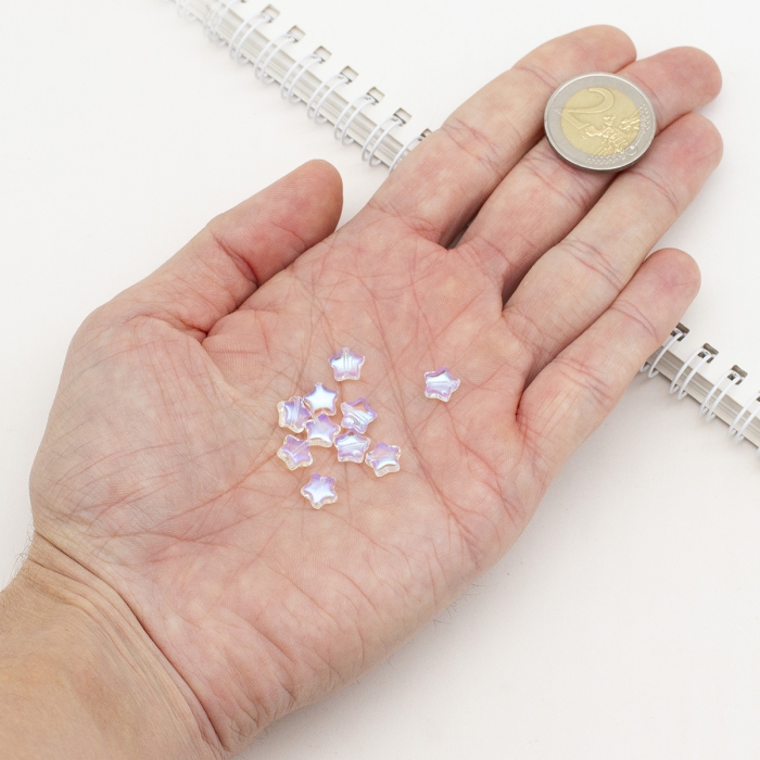 Стеклянные бусины "Звезда" с прозрачным окрашиванием и покрытием АВ цвет придают украшениям особую элегантность и блеск. Форма "Звезда" придает им уникальный дизайн, подчеркивая индивидуальность украшений. Эти бусины идеальны для создания различных украшений, таких как браслеты, ожерелья и серьги. Покрытие АВ (Aurora Borealis) придает им мерцающий и отражающий свет эффект. Однако, стоит учесть, что цвета могут немного варьироваться в зависимости от настроек монитора и освещения.