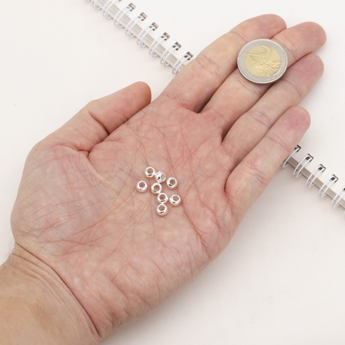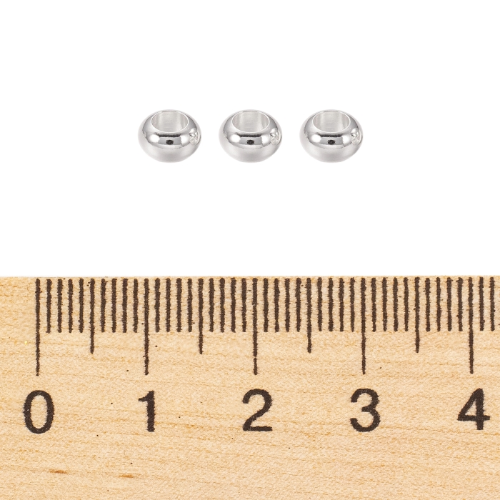 Бусины-Разделители Латунь, Рондель, Цвет: Серебро, Размер: 6х4мм, Отверстие 3мм, (УТ100030620)