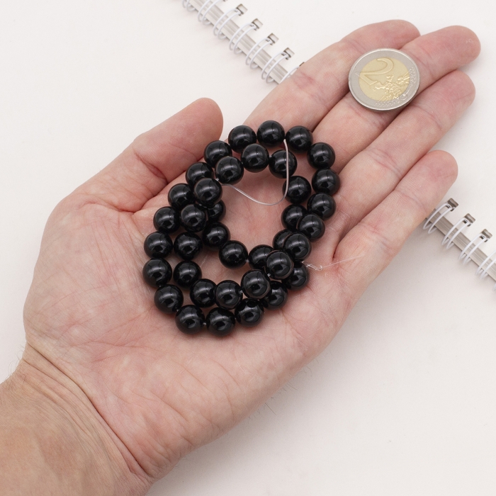 Бусины Натуральный Черный Оникс, Класс А, на нитях, Круглые, 10мм, Отверстие 1мм, около 35шт/36см/нить, (УТ100030873)