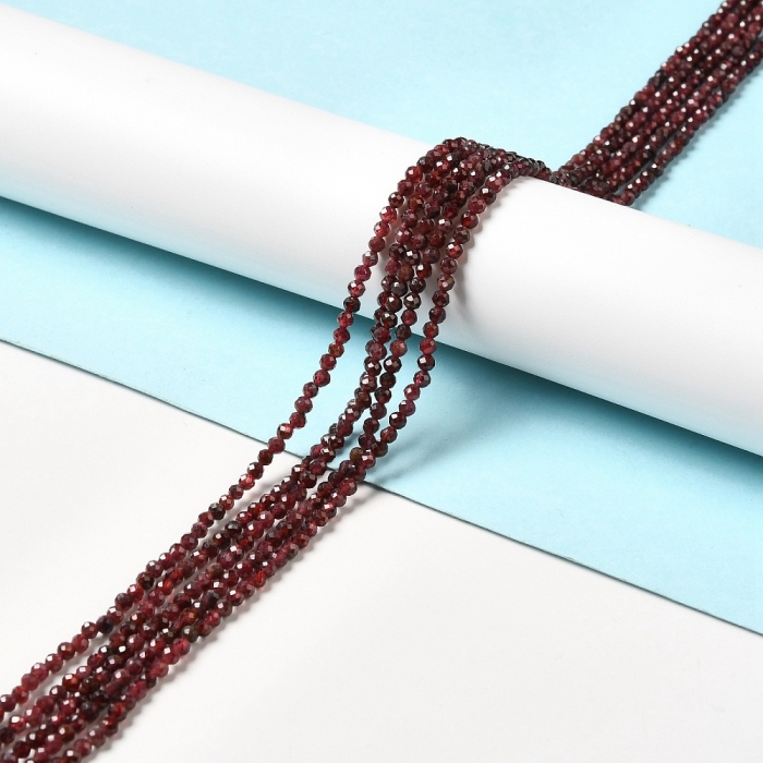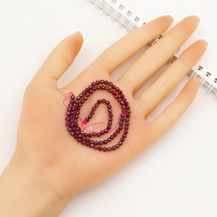 Бусины Натуральный Гранат Круглые Граненые, 3мм, Отверстие 0.6мм, около 135шт/37см/нить, (УТ100030951)