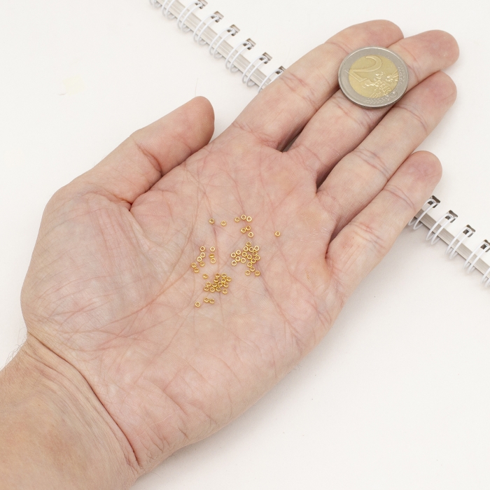 Бусины Зажимные Стопперы, Кримпы Медицинская Сталь, Рондель, Стойкое Покрытие Позолотой 18К, 1.9мм, Отверстие 1мм, (УТ100031179)