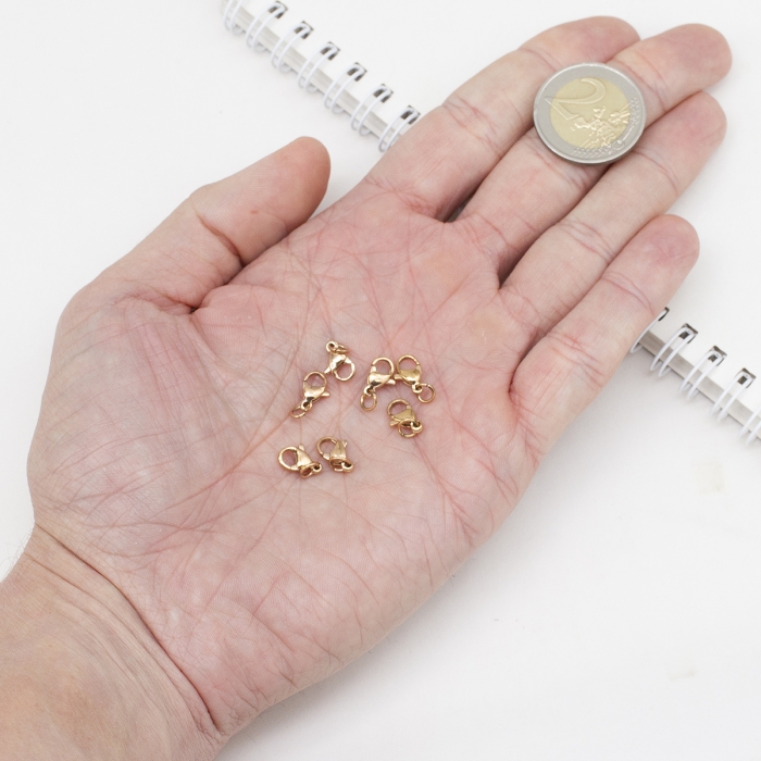 Застежка Карабин-Лобстер Нержавеющая Сталь, Позолота 24К, 15х9х4.5мм, Отверстие 2мм, (УТ100029364)