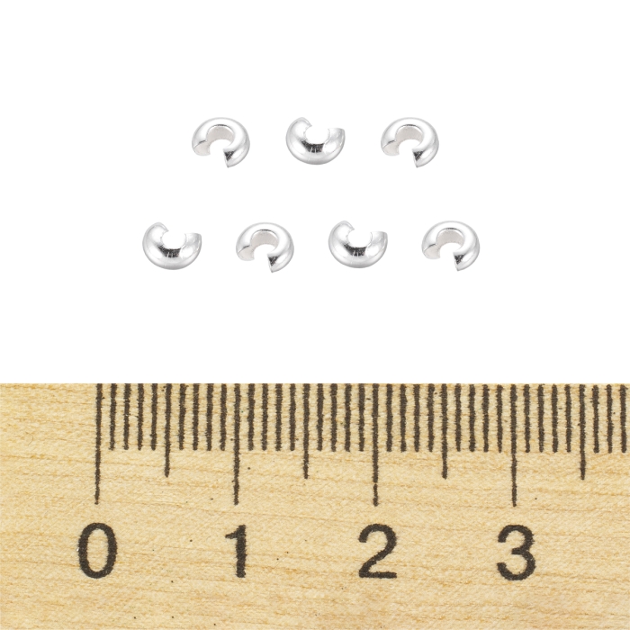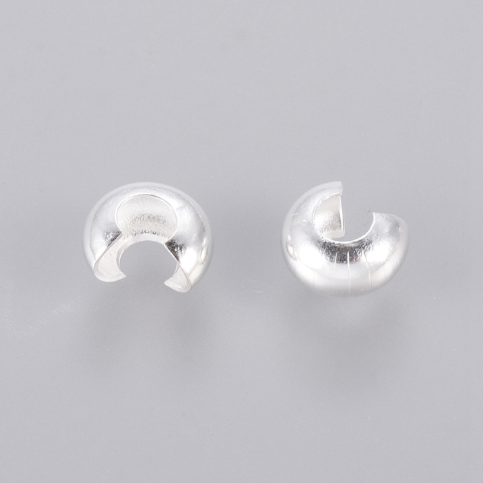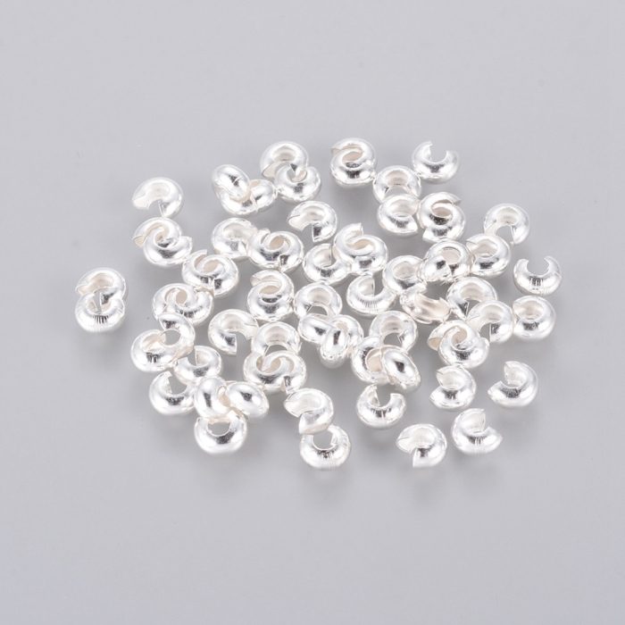 Бусины Крышки Кримпов, Латунь, Оболочки для Зажимных Бусин Стопперов, Серебро, 4мм, Отверстие 1.5-1.8мм, около 100шт/10г, (УТ100031285)