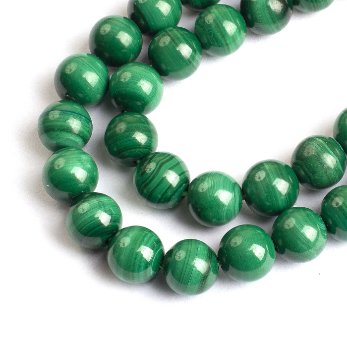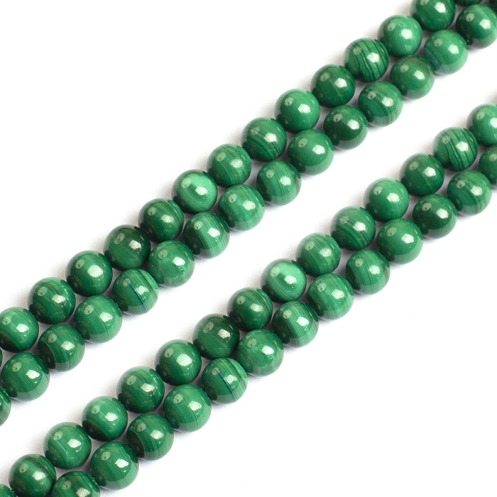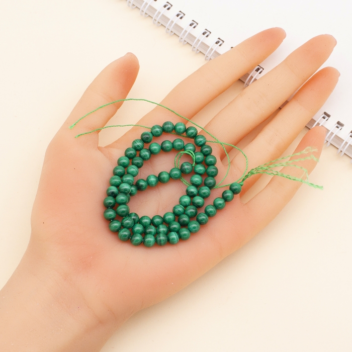 Намистини Натуральний Малахіт Клас А Круглі, 6мм, Отвір 0.7мм, близько 55шт/38см/нитка, (УТ100032264)