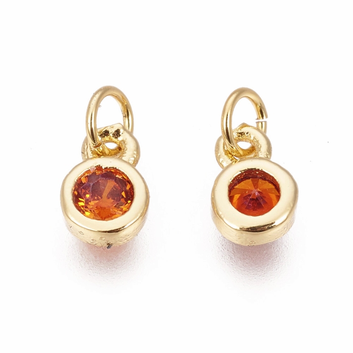 Підвіски Плоскі Круглі, Латунь і Фіаніти, Колір: Золото, Колір фіанітів: Помаранчевий