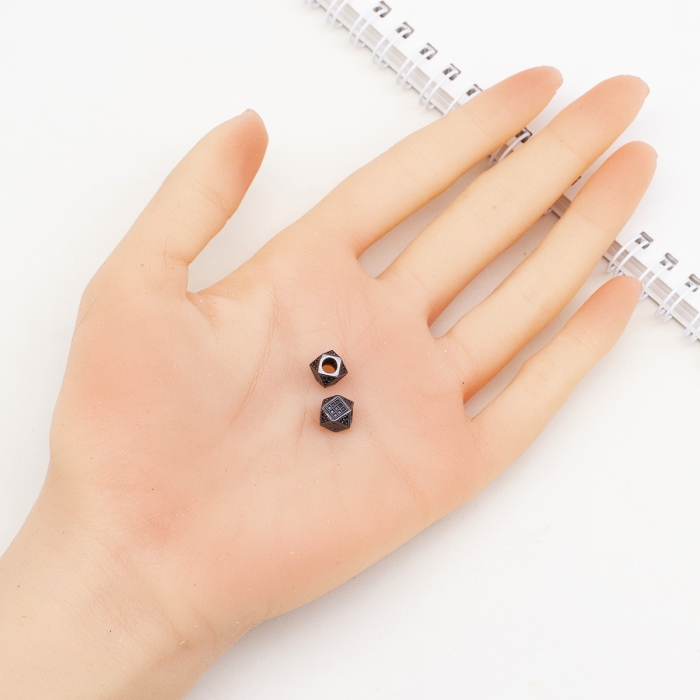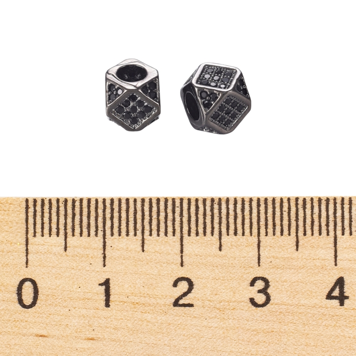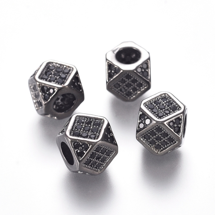 Намистини з Латуні з Фіанітами, Багатокутні, Колір: Збройова Сталь, Колір фіанітів: Чорний.