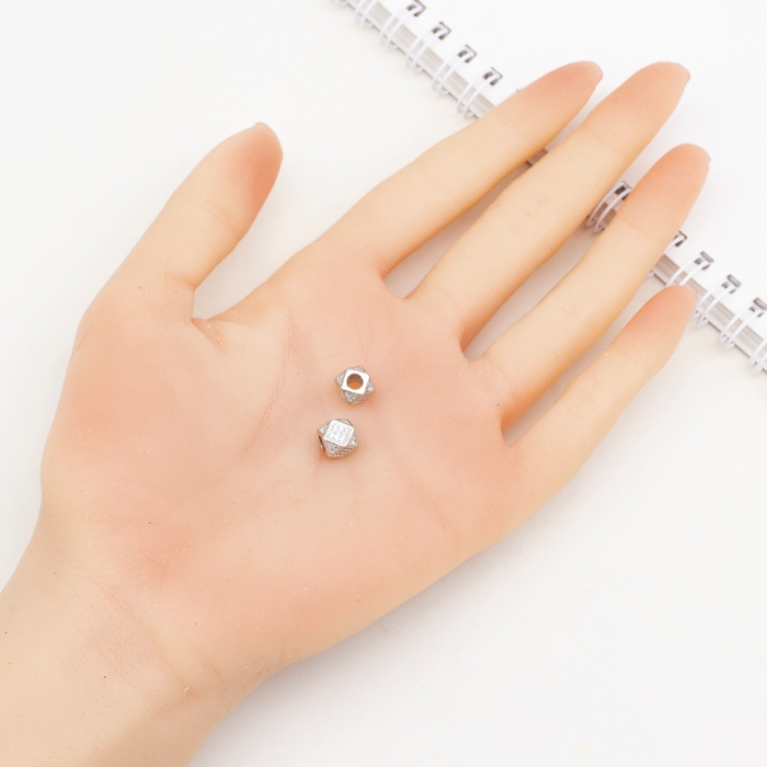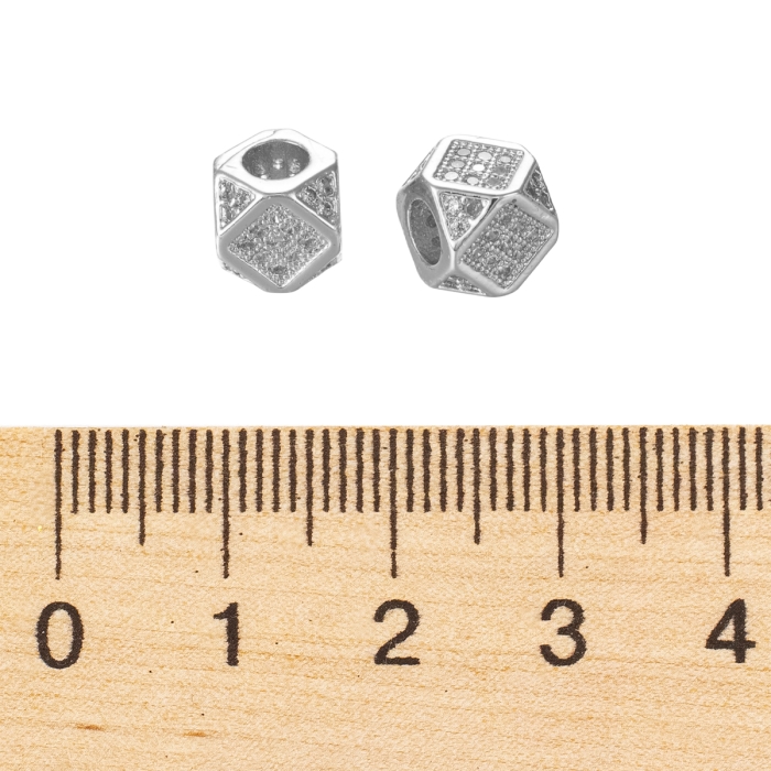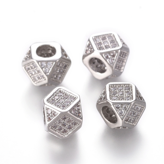 Намистини Латунь з Фіанітами, Багатокутні, Стійке Покриття, Платина, 6.5-7мм, Отвір 3мм, (УТ100032493)