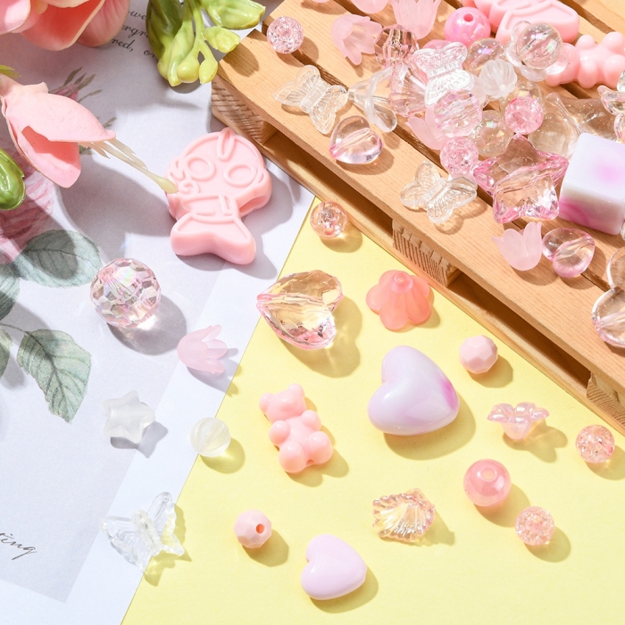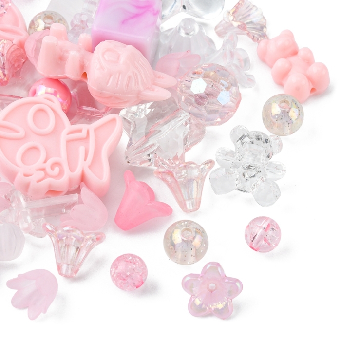Намистини Акрилові, Прозорі та Непрозорі, Мікс Форм, Колір: Рожевий
