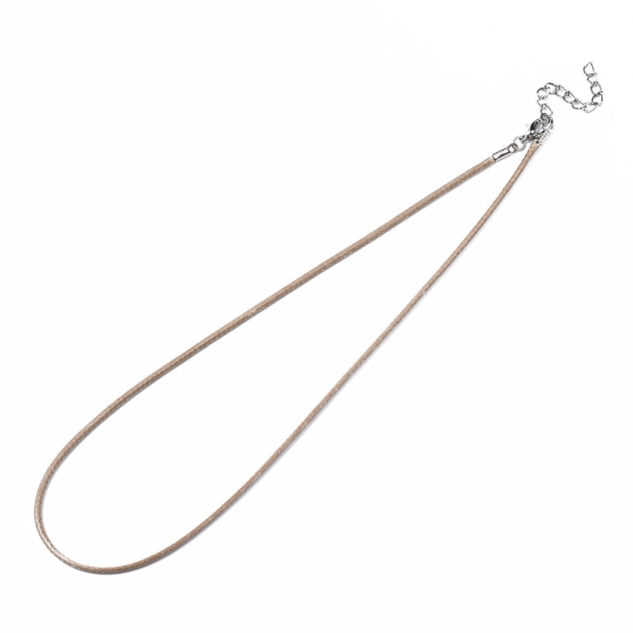 Вощений бавовняний шнур із застібкою та подовжувальним ланцюжком із заліза кольору платина. Яскравий мікс кольорів робить цей шнур універсальною основою створення прикрас. Застібка карабінного типу забезпечує надійну фіксацію. Довжина – 45 см, підходить для більшості типів намист.