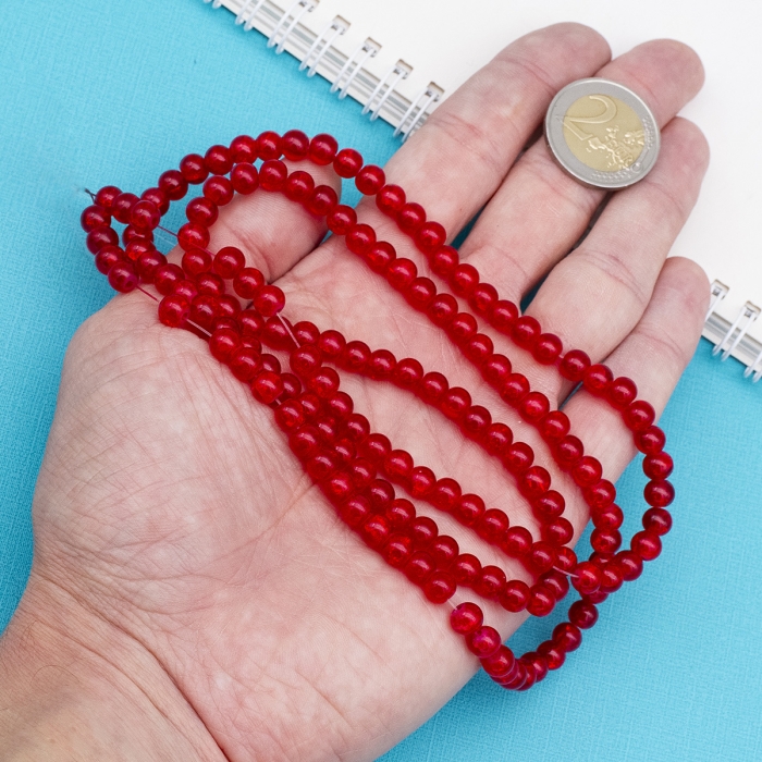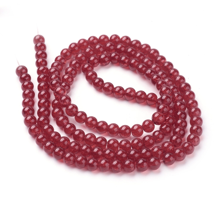 Намистини "Бите Скло" Круглі, Червоний, 6мм, Отвір 1мм, близько 127шт/76см/нитка, (УТ0005816)