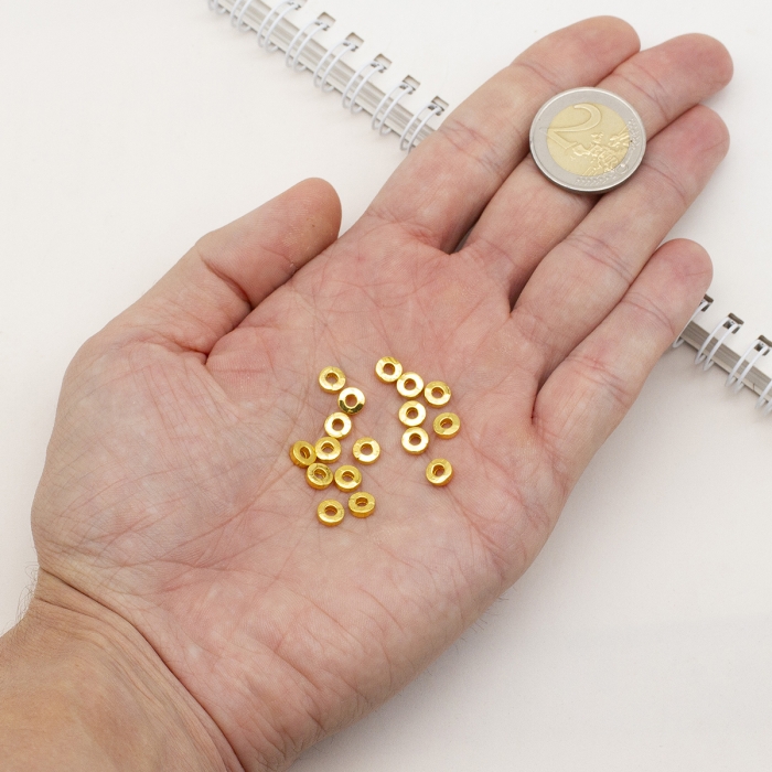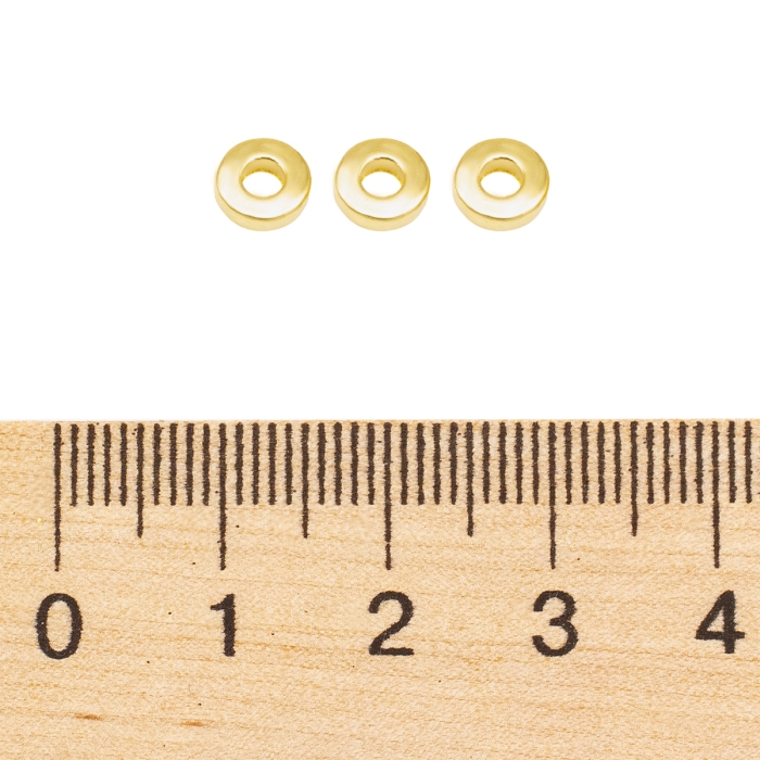 Намистини-Роздільники Металеві, Форма Пончик, Золото, 6х2мм, Отвір 2.5мм, (УТ0027700)