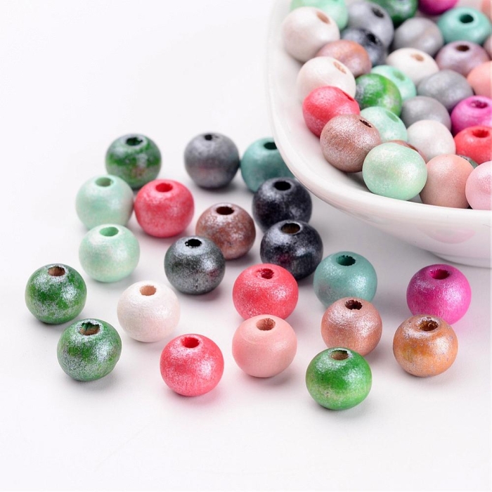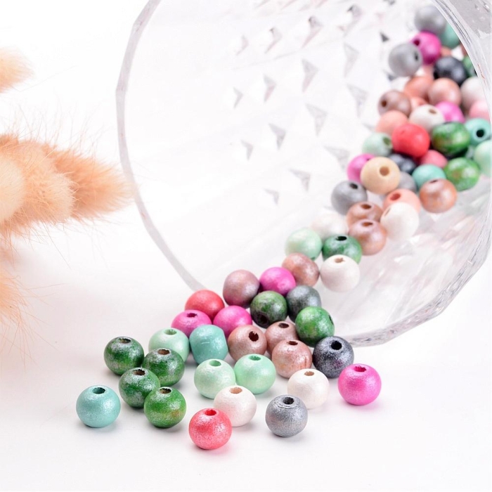 Намистини Дерев'яні Пофарбовані, Круглі, Мікс, 8мм, Отвір 3мм, близько 140шт/25г, (УТ100005925)