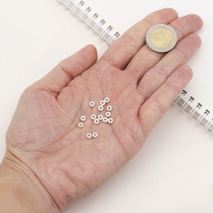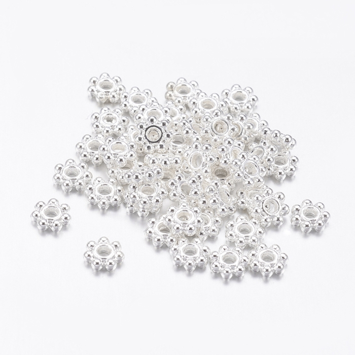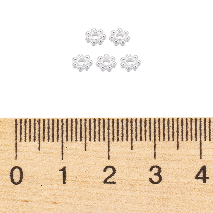 Намистини-Роздільники, Сплав, Квітка, Колір: Срібло, Розмір: 4.5х1.5мм, Отвір 1мм, (УТ100006803)Упак.: