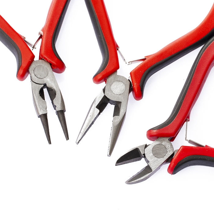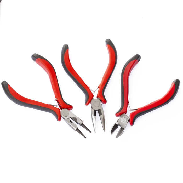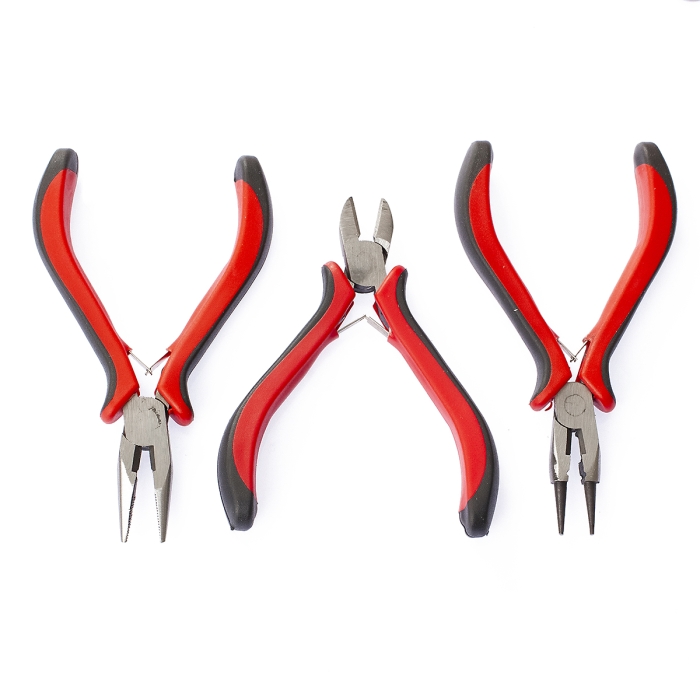Набір сталевих інструментів 3шт, на блістері: Круглогубці + Плоскогубці + Кусачки, Червоні, (УТ100008000)